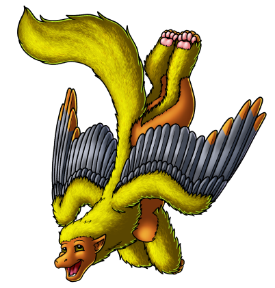 Derivative WorksHeight: 3'3" at the shoulder; ss (large 3’) body size, E2E4 (short) ears, Ww (single-color) wingtips, Tt (bushy) tail, Y5Y6 (hazel) eyes, C2C3 (orange) body in Ll (medium) value, X3X4 (yellow) furnishings in uu (dark) value, I1I1 (grey) wings in Nn (medium) value, P1P3 (no visible pattern) in R1R2 (grey) color in Aa (medium) value