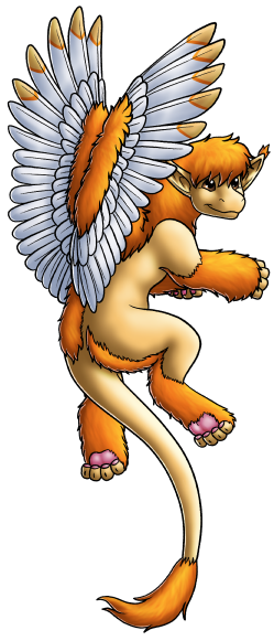 Derivative WorksHeight: 2'6" at the shoulder; Ss (average 2’) body size, E3E3 (long tufted) ears, ww (double-color) wingtips, TT (tufted) tail, Y3Y7 (brown) eyes, C2C3 (orange) body in LL (light) value, X2X5 (orange) furnishings in Uu (medium) value, I1I6 (grey) wings in nn (light) valueP2P4 (no visible pattern) in R1R6 (grey) color in aa (light) value