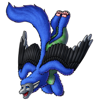 Derivative WorksHeight: 1'2" at the shoulder; SS (small 1’) body size, E1E3 (long) ears, Ww (single-color) wingtips, Tt (bushy) tail, Y1Y5 (blue) eyes, C4C8 (grey) body in Ll (medium) value, X7X8 (blue) furnishings in Uu (medium) value, I1I3 (grey) wings in NN (dark) value, P4P5 (mottled) in R8R8 (green) color in Aa (medium) value
